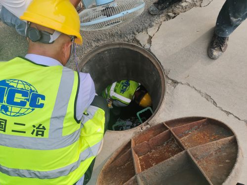 發(fā)現(xiàn)此問題后,項(xiàng)目經(jīng)理盧晨帶領(lǐng)項(xiàng)目部管理人員立即到現(xiàn)場(chǎng)察看情況,并且及時(shí)上報(bào)建設(shè)單位,同時(shí)聯(lián)系溝通市政管養(yǎng)人員,并與施工隊(duì)實(shí)地查看堵塞原因。因附近村莊建設(shè)時(shí)間較早,雨水管、雨水井年久失修,降雨時(shí)部分淤泥、砂石和雜草樹葉隨水流沖入管道等,種種原因?qū)е掠晁?、雨水井雜物淤積,排水能力下降。查明原因后,許昌項(xiàng)目部立即研究解決方案,明確施工流程,調(diào)集專業(yè)疏通人員啟動(dòng)設(shè)備車輛,隨即開始維修,經(jīng)過一周左右的清污疏通、清淤,堵塞雨水管線全部恢復(fù)暢通,共計(jì)清理雨水井24個(gè),雨水管11個(gè)(長(zhǎng)約2000米),徹底解決了村民一大難題。